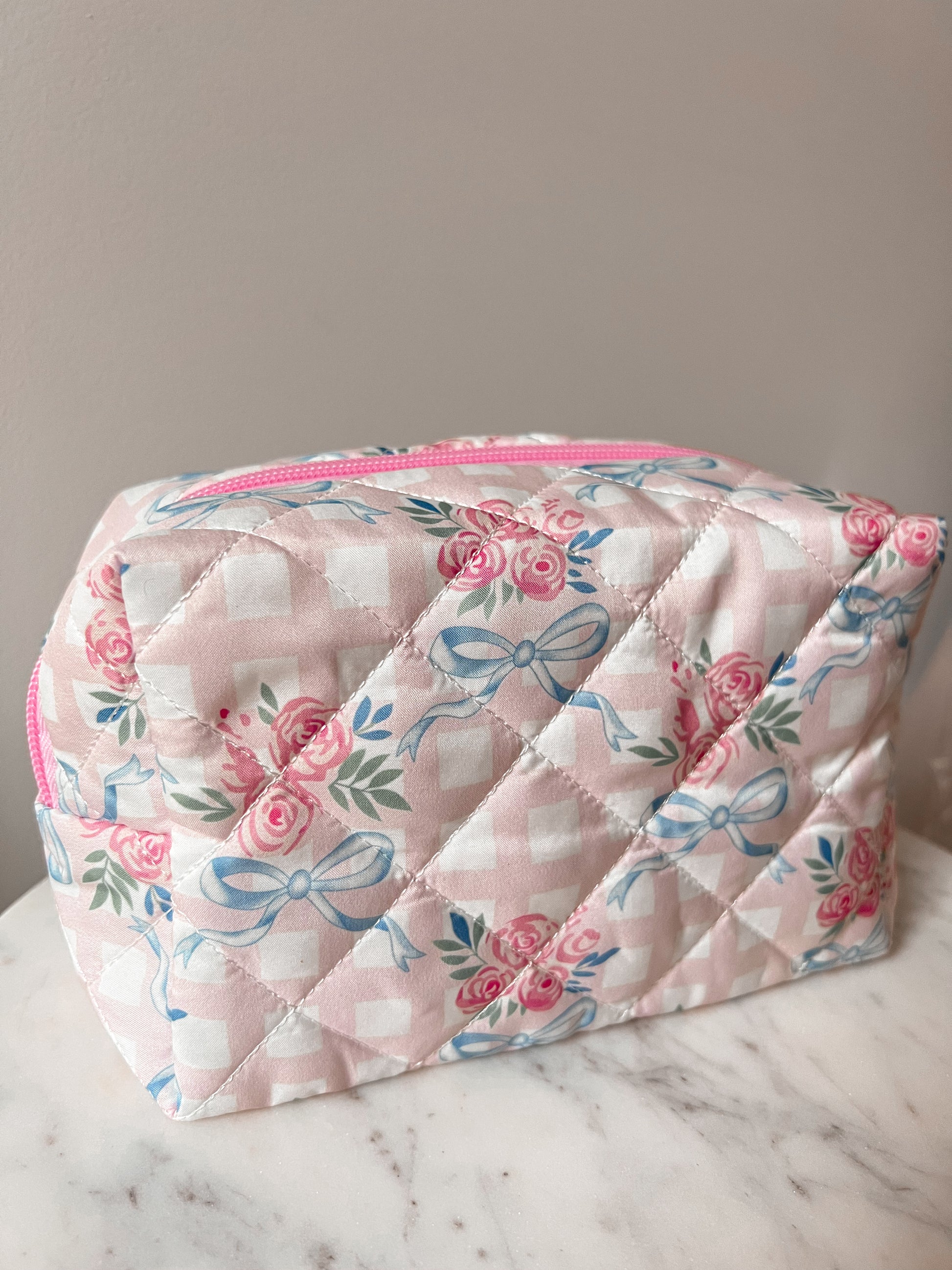 Bow Quilted Makeup Bag